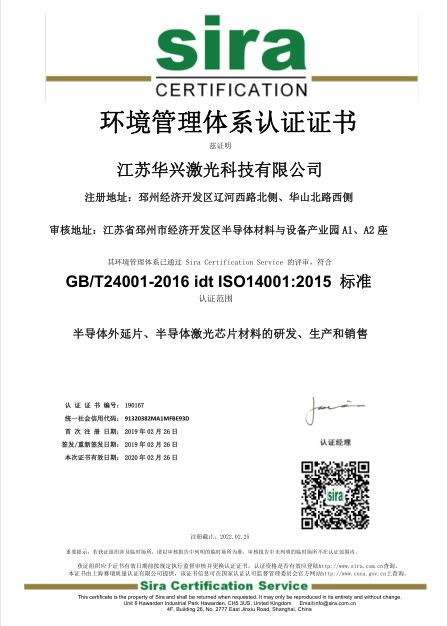 2019年2月20日-21日賽瑞國際認證公司審核組對我司進行了為期兩天的環境管理體系認證審核,經過審核我司建立的環境管理體系完全符合標準要求,運行有效,準予頒發環境管理體系認證證書。